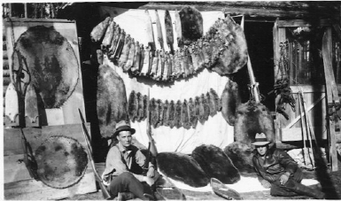Alan Merry Owston (on left) during 1936 as caretaker at Dole Lodge, Panesk, B.C., Canada. Beaver & muscrat skins.